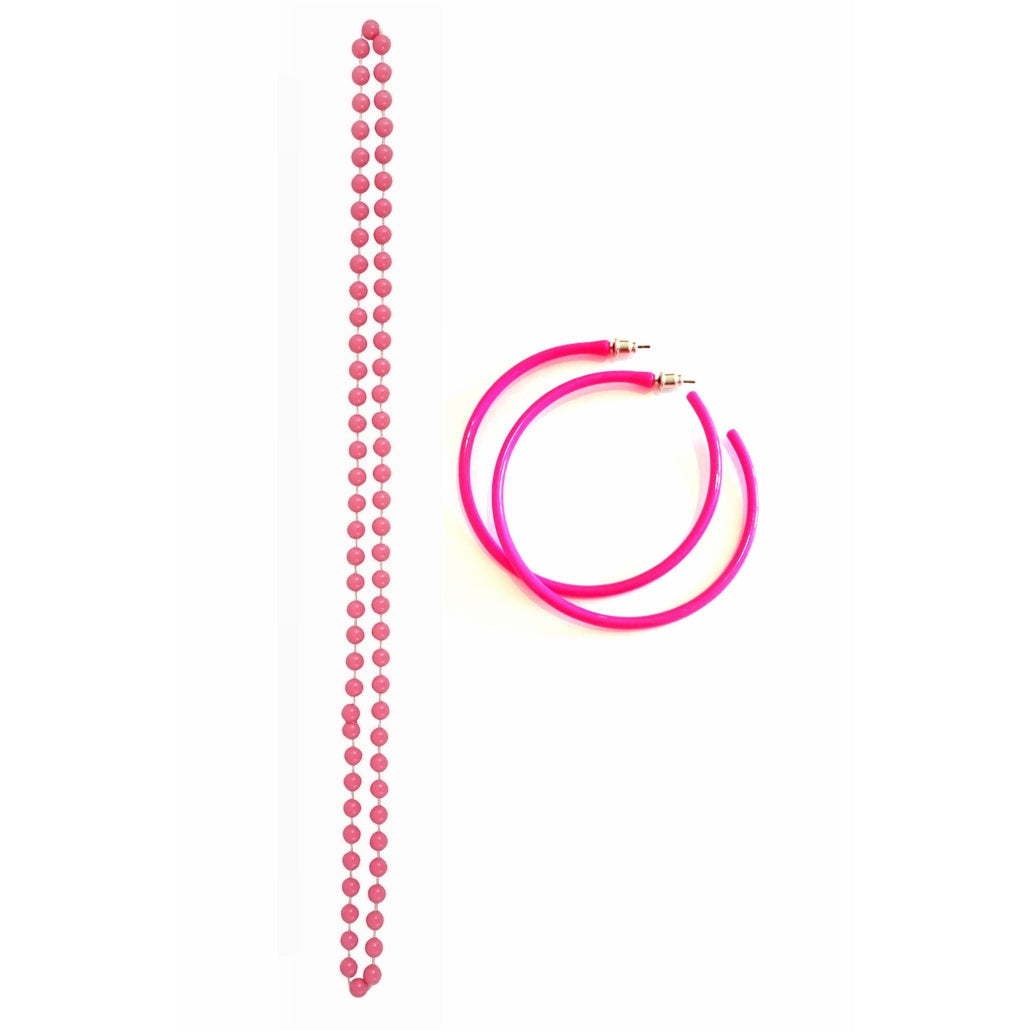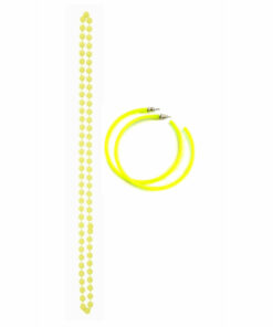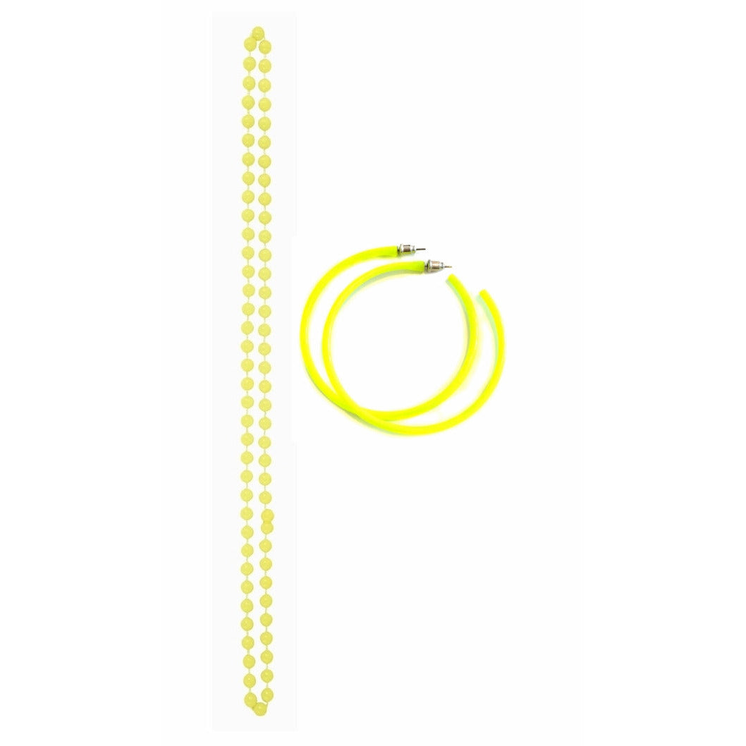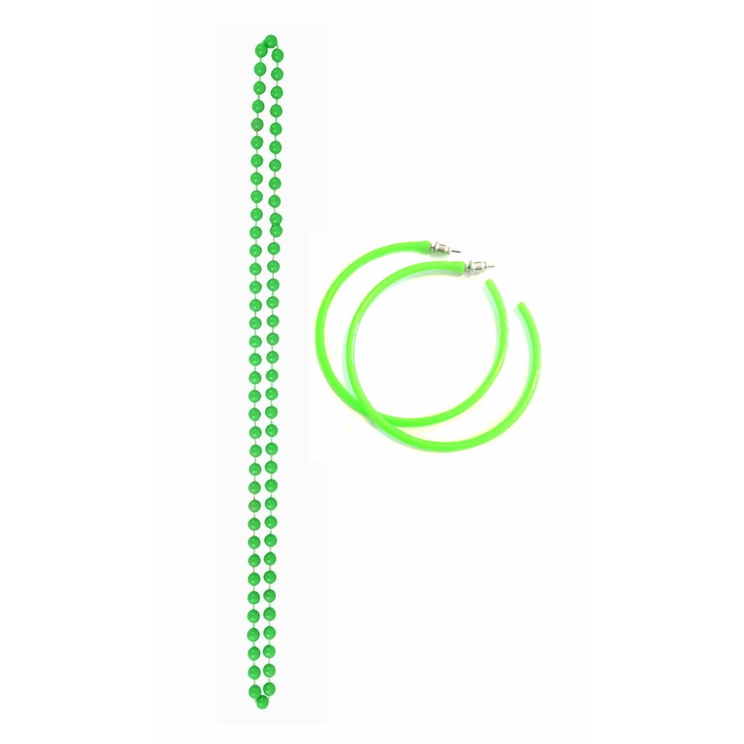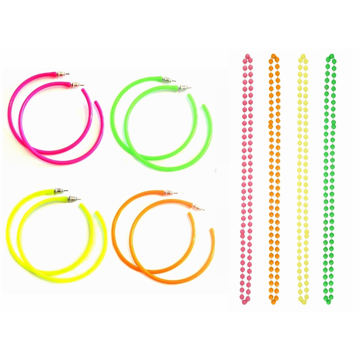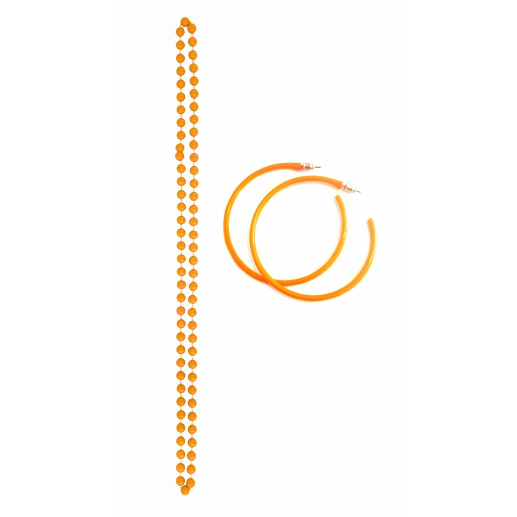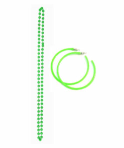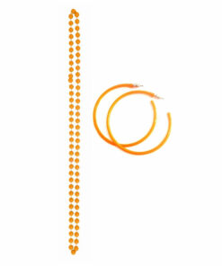 Neon Plastic Beads & Earrings for your 1980’s Rave Party, available in 4 colours Specifications 48 inch Plastic Beads Hooped Earrings for Pierced Ears Available in Pink, Orange, Yellow & Green