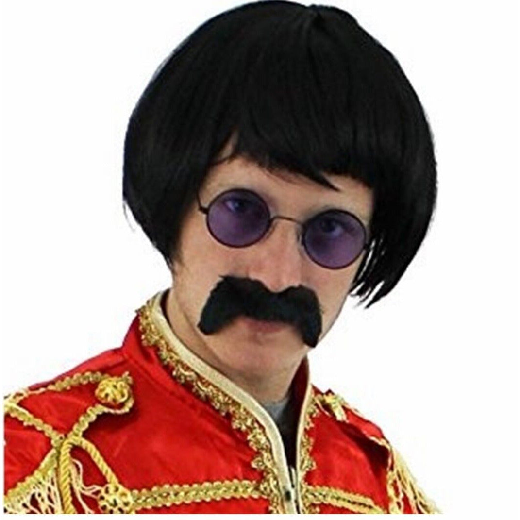 Hit the Beat with this rock sergeant set. Specifications Set includes – Adult – one size Black Wig, Round Blue Lens Hippie Glasses and self-adhesive moustache