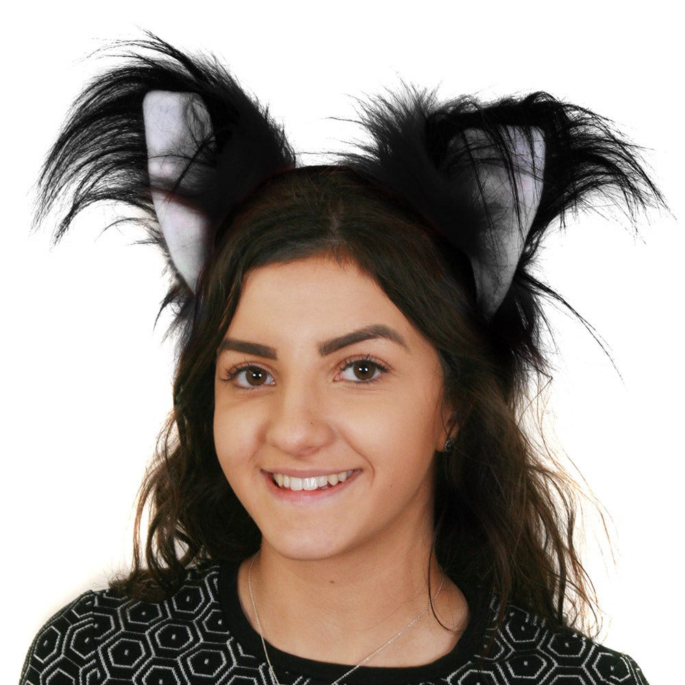 Cute Black Cat Furry Ears on a lightweight Headband, prefect for Halloween, school plays, cosplay etc Specifications:- Suitable for Adults & Children Fake Black Fur on a Headband