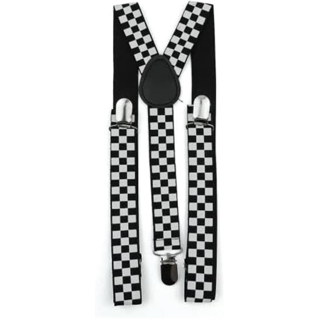 The perfect accessory to complete your Police Officer, Ska Music 80s or just general Fashion Wear Specifications Fun Braces to Add Some Style to Your Wardrobe! Black & White Chequered Design Polyester Elastic & Metal Alloy Clips Product Dimensions: 35mm Width & Adjustable Length