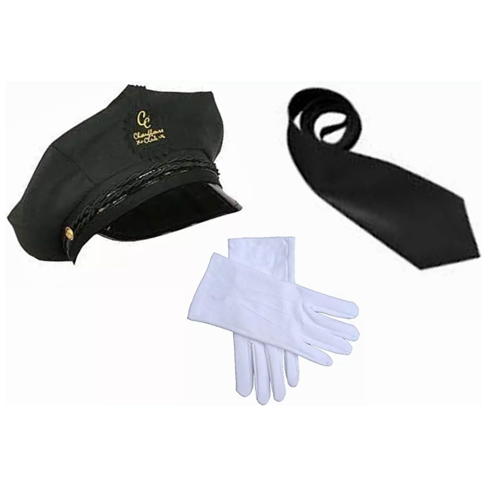 Chauffeur Driver Cap Black Tie White Gloves Set