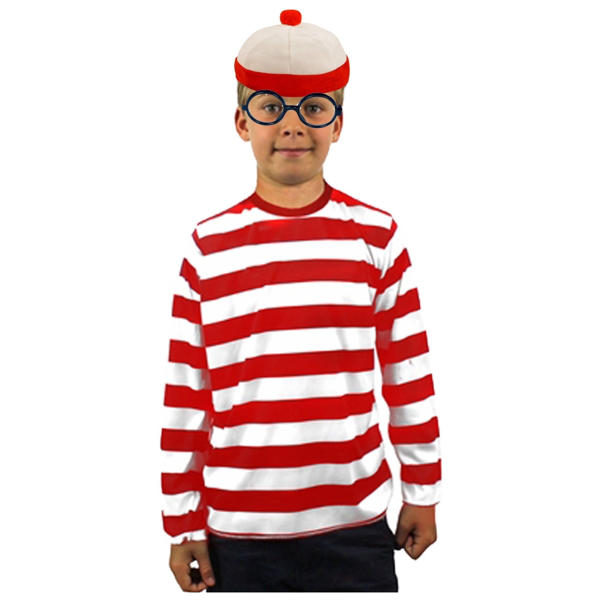 Child’s World Book Day Wheres Wally Long Sleeve Red & White T Shirt Hat & Glasses Set