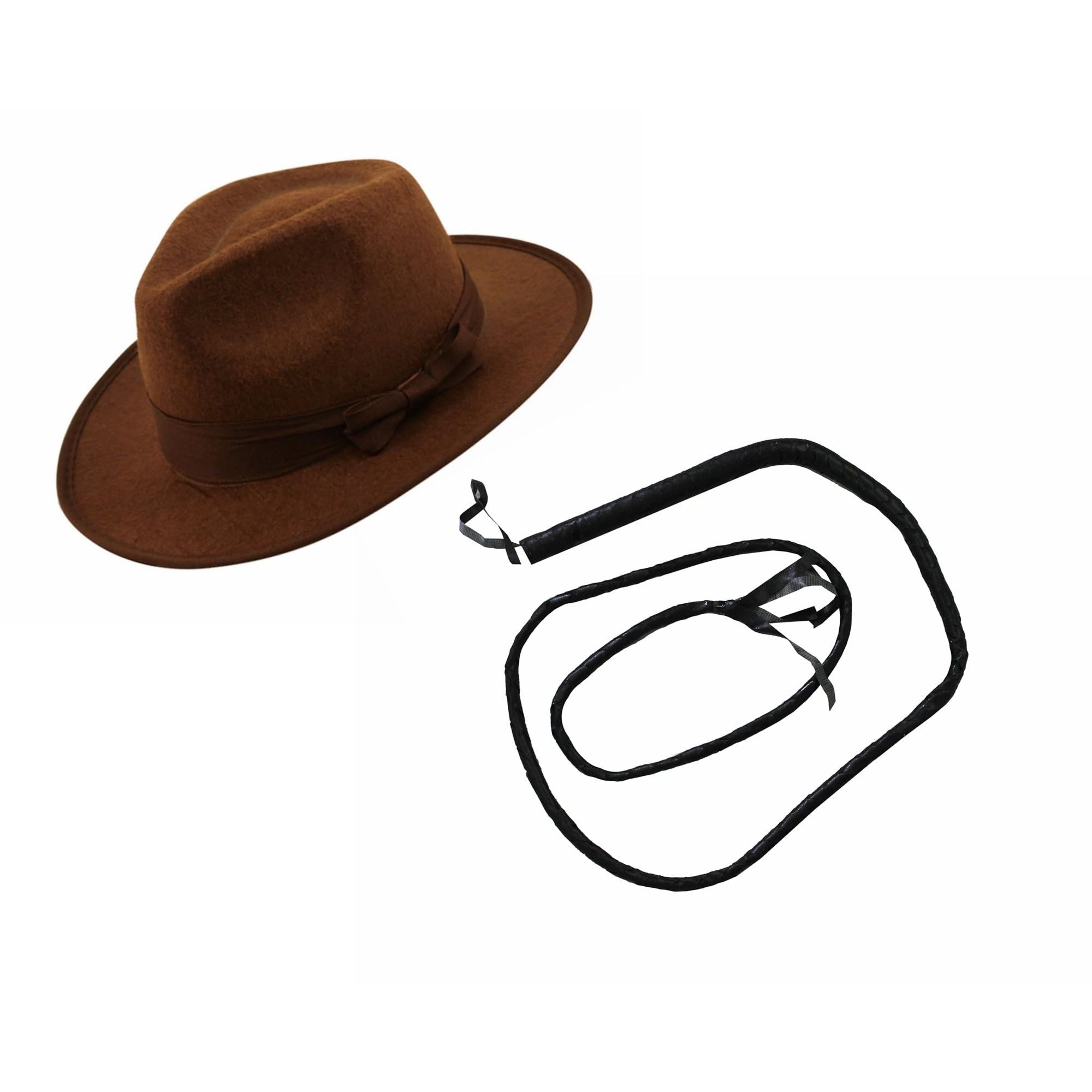 Turn into your favourite Movie Action Hero with these impressive accessories. Specifications 60cm Brown Fedora Hat 68″ Long Bull Whip