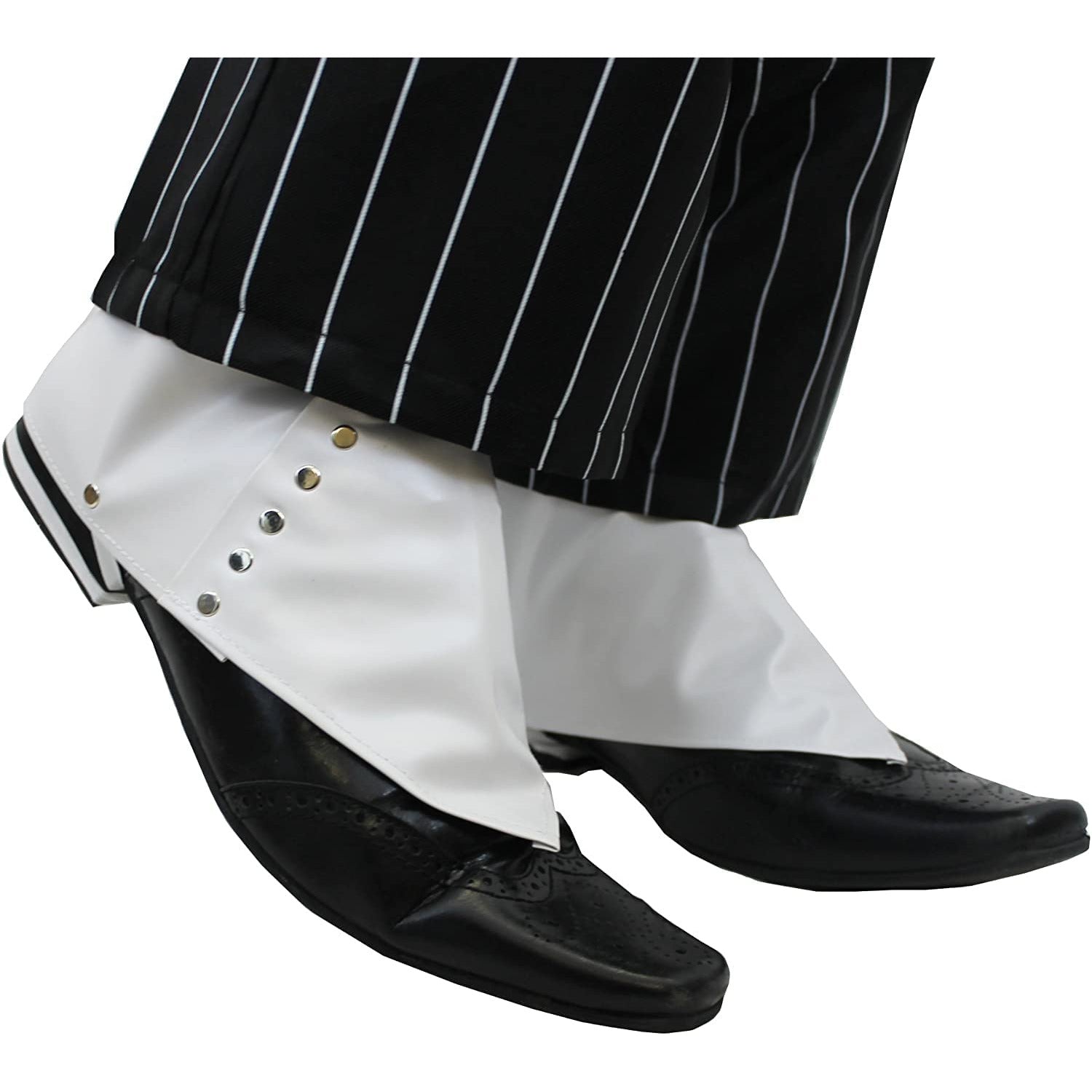 These one size gangster spats are perfect to finish off your Al Capone or gangster fancy dress outfit White shoe covers with metal button detailing