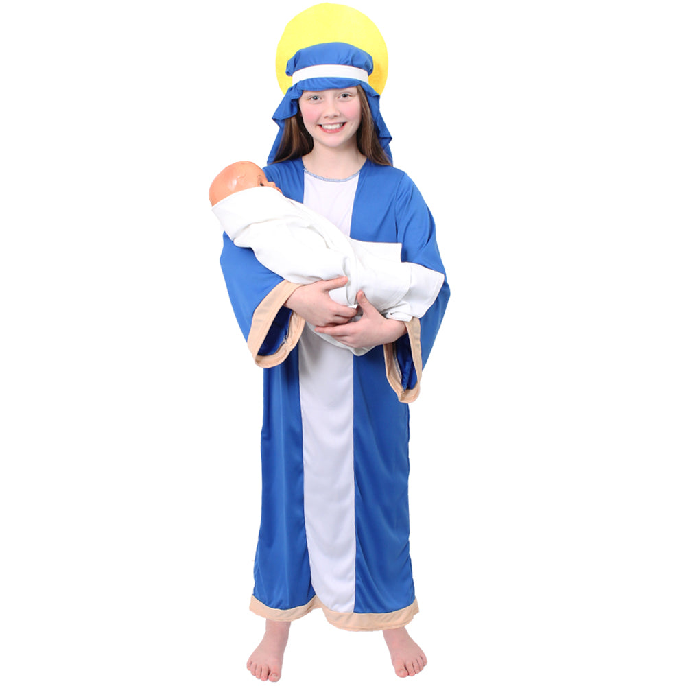 Have your child centre stage at the school Nativity play with this Virgin Mary costume Specifications Set Includes – Dress, Headdress & Halo Headband Available in 3 Sizes – Small-Age 4-6, Medium-Age 7-9, Large-Age 10-12 100% Polyester