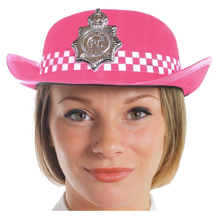 Top off your girly Police Officer Fancy Dress with this fun hat Specifications Pink Carded Felt Hat with Silver-Effect ‘PC’ Badge 58cm Perfect for Hen Parties or Adult Fun