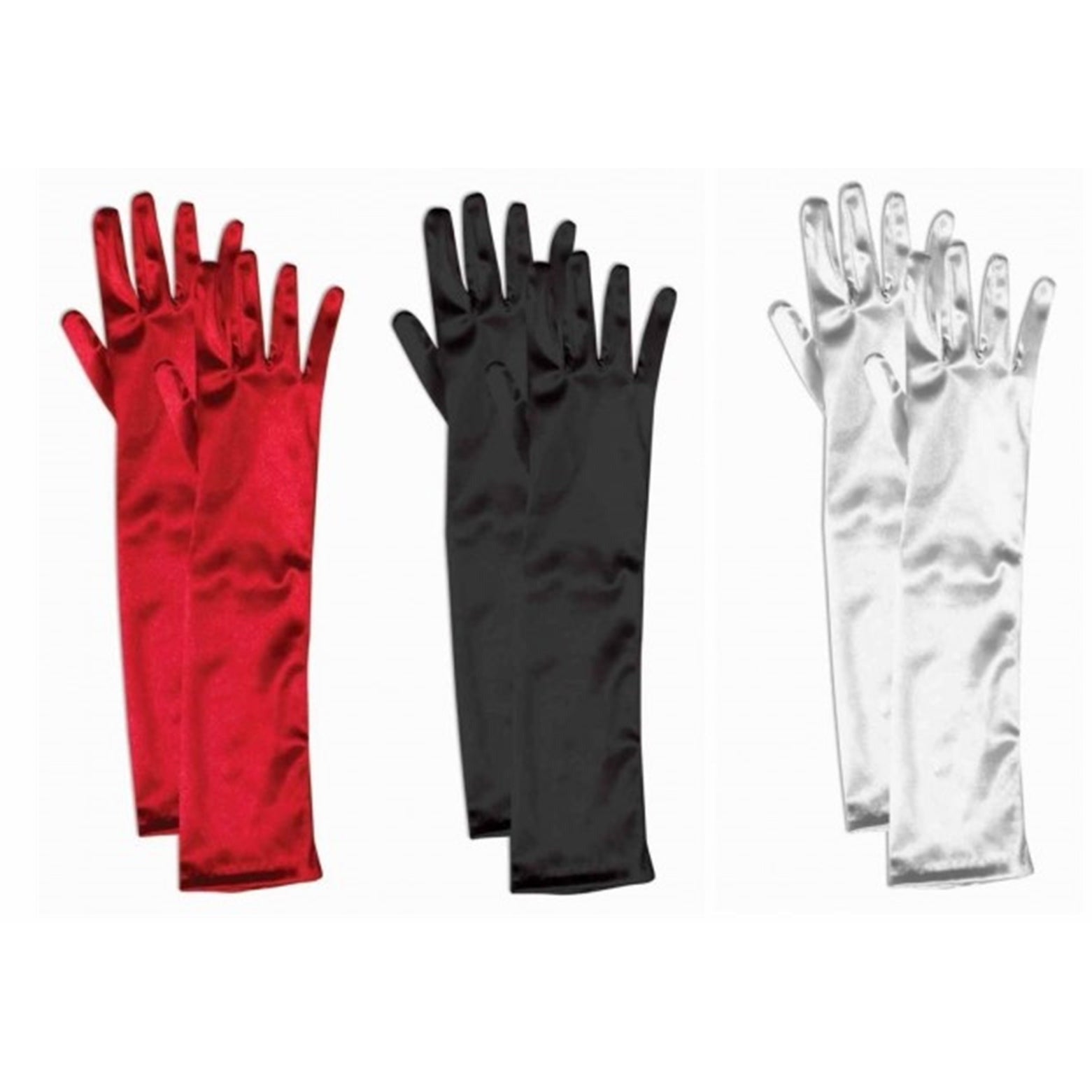 Arrive in style at your Great Gatsby Party with these quality Flapper Gloves. Specifications Satin-effect Gloves Available in 3 Colours – Red, Black, White