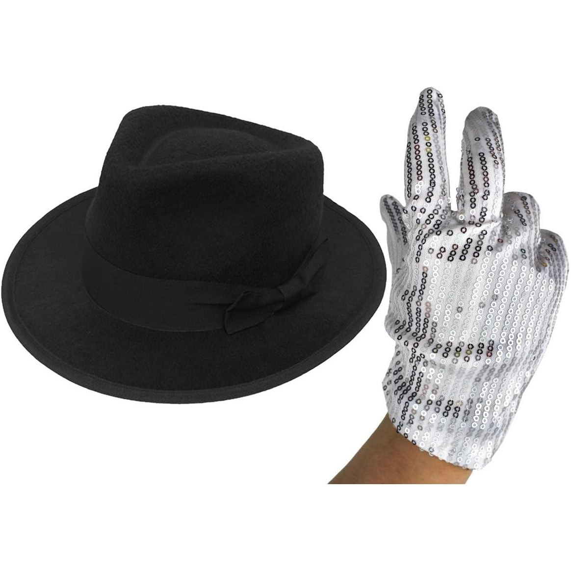 Moon Walk back to the 80s as your favourite Pop Idol with these quality Fancy Dress Accessories Specifications:- Set Includes:- 60cm Black Fedora Carded Felt at with Black Bow Trim One Sequined Glove – Adult One Size Perfect for 80s events etc