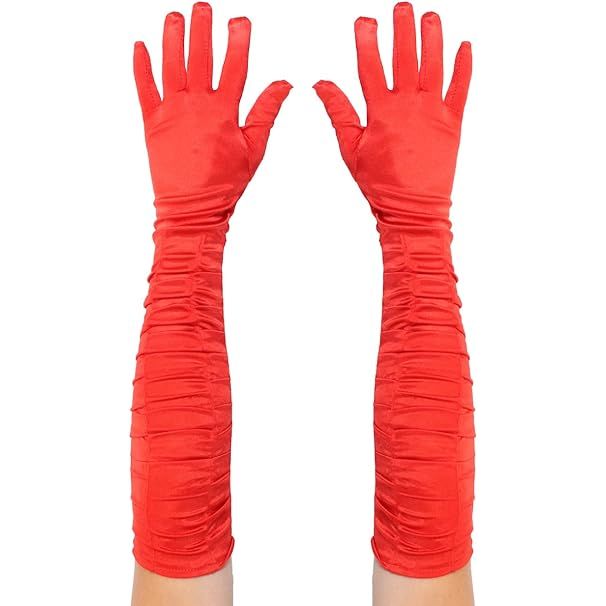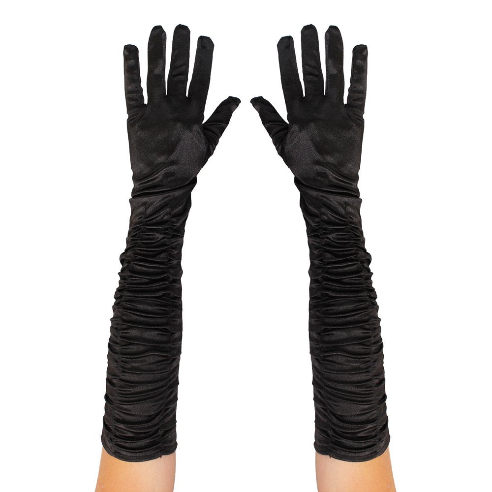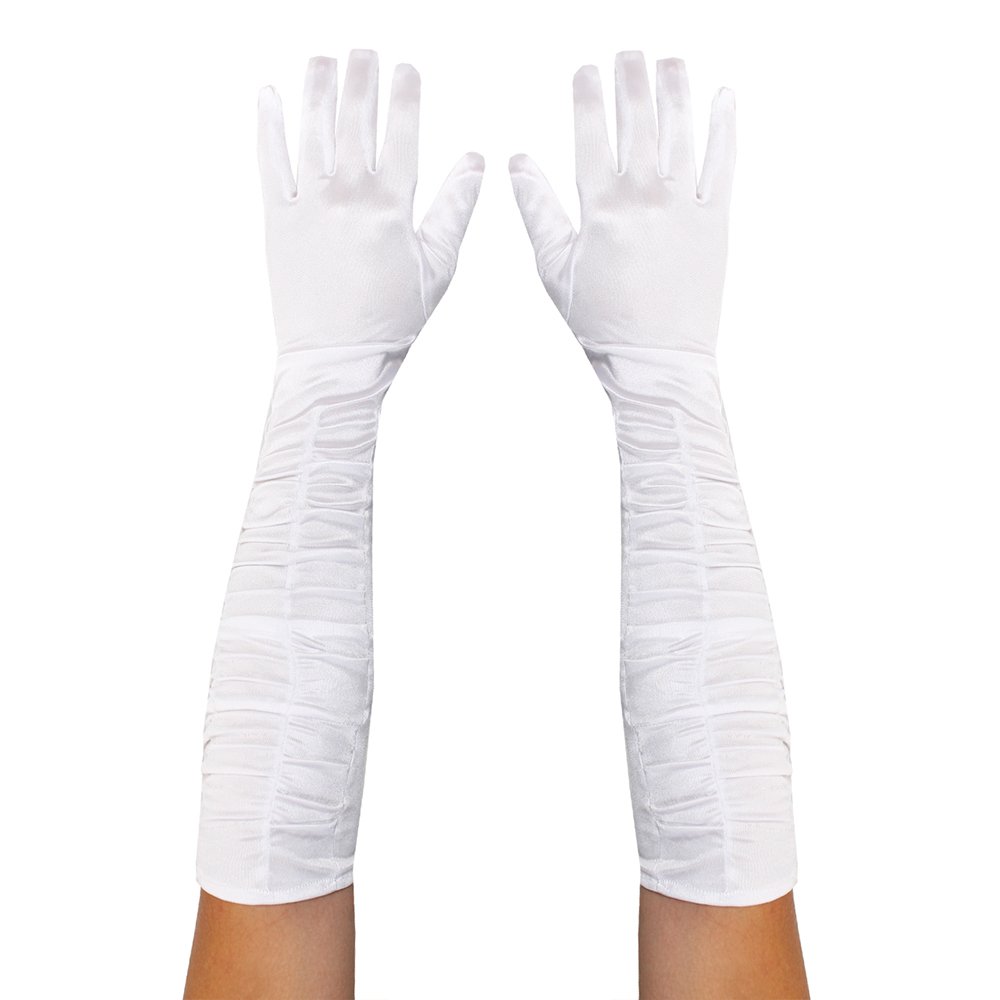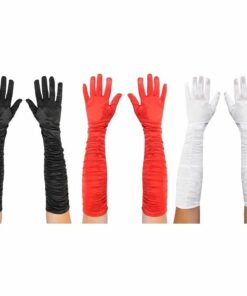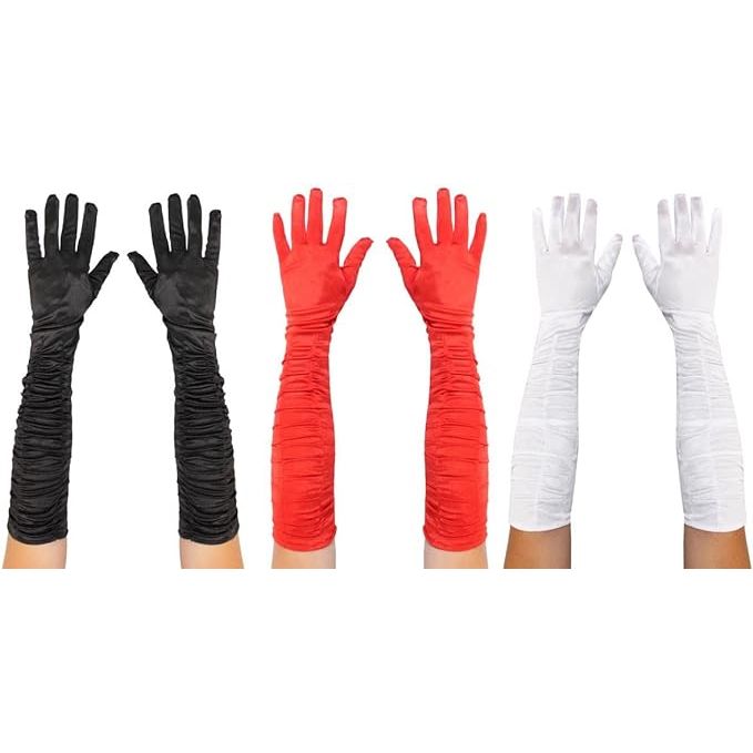 Add some Gatsby Style to your Flapper Fancy Dress Outfit with these quality Long Ruched Satin-Effect Gloves Specifications: Available in 3 Colours: Red, White & Black 100% Polyester Ruched Design Perfect for Murder Mystery Evenings, 1920’s Events