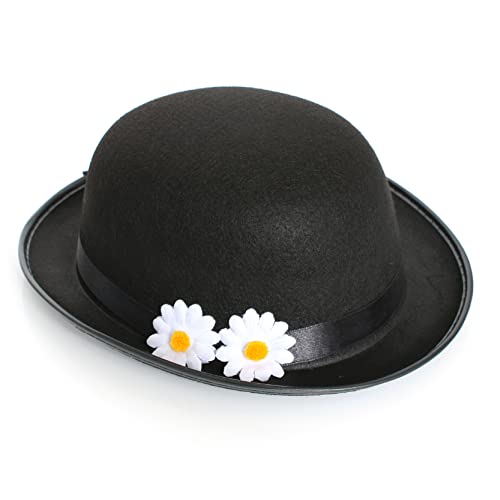 Complete your favourite magical nanny book character with this impressive daisy bowler hat. Specifications:- Available in 3 sizes – Child – 55cm, Adult 58cm, Large Adult 60cm Carded Felt Black Hat adorned with 2 x plastic daisies