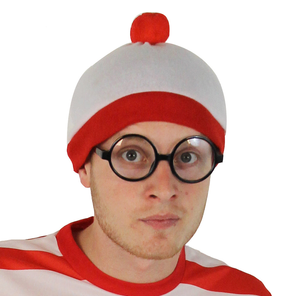 Where’s Wally Adult White Bobble Hat with Red Pom Pom